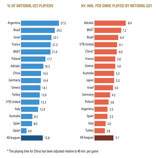 A major reason for the migration is less opportunity to develop in their own country. According to the report, no league in the world averaged more than 10 minutes per game for national U21 players. And the world wide average percentage of national U21 players decreased from 17% in 2022 to just 15.8% in 2023.
